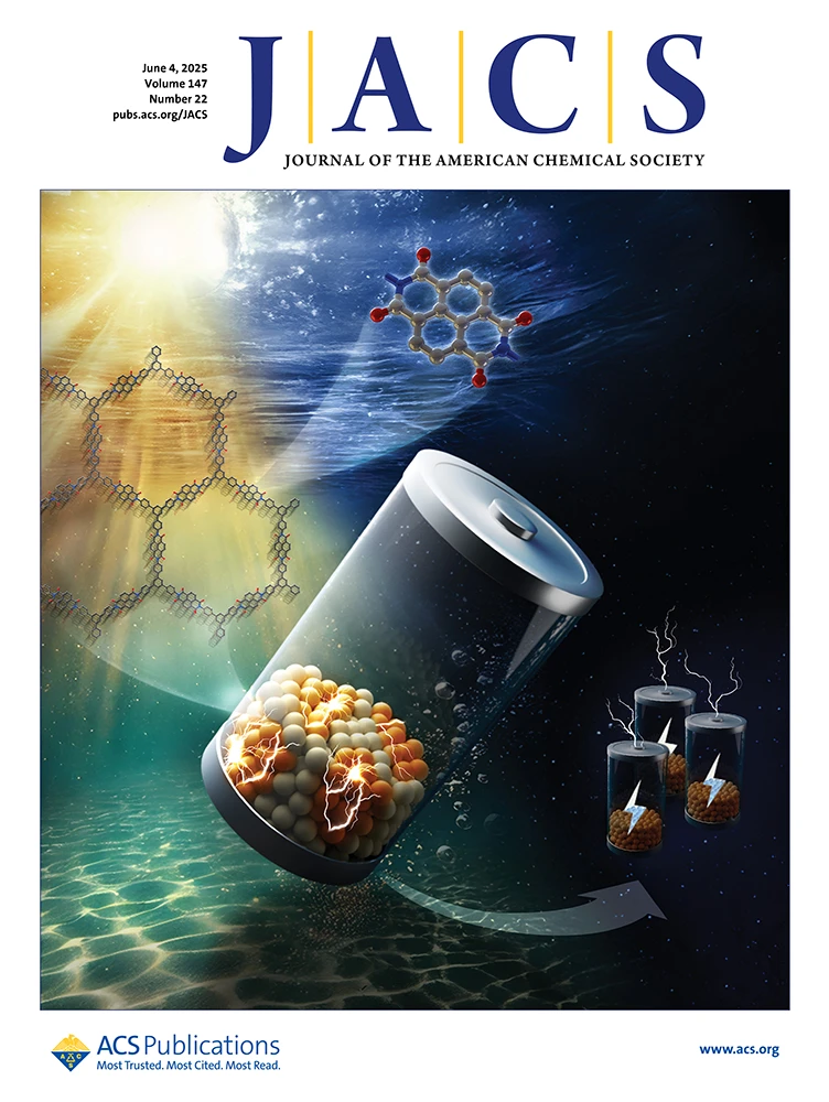 Für Prof. Dr. Bettina Lotsch und Dr. Bibhuti Bhusan Rath entwickelten wir eine Titelillustration in JACS. Die Grafik visualisiert das Konzept einer wasserbasierten Solar-Batterie, in der ein NDI-basiertes COF Lichtenergie aufnehmen, über radikalische Zwischenzustände speichern und bei Bedarf wieder abgeben kann. Die Illustration übersetzt diesen Ansatz der gekoppelten Energiegewinnung und -Speicherung in eine klare, elegante Bildwelt und unterstützt die wissenschaftliche Aussage mit einer präzisen visuellen Struktur.